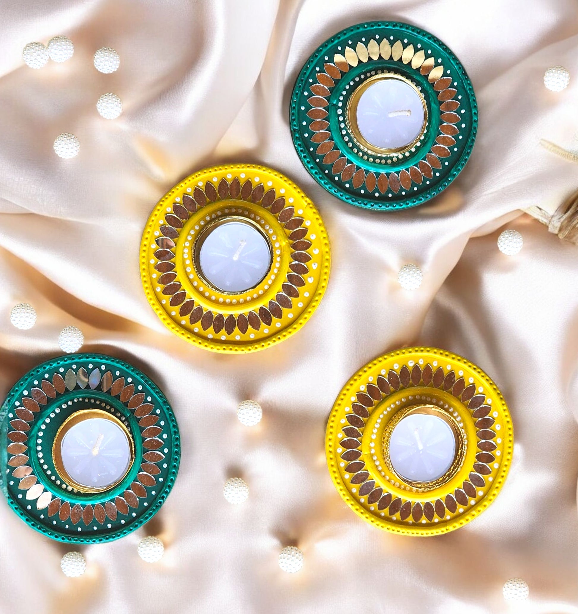 Handcrafted in traditional Lippan art with clay and mirror work. Lights up beautifully with a diya or tea light, making it ideal for Diwali décor, pooja spaces, or gifting.